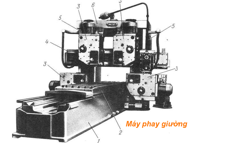 – Bộ phận bàn máy: là chi tiết dùng để gá lắp chi tiết khi gia công, nó có dạng chữ nhật đúc bằng gang, bên dưới có rãnh trượt để ghép với mộng trượt của bàn dao dọc và hệ thống vít đai ốc để tạo chuyển động chạy dao ngang, phía trên có các rãnh chữ T để giữ đầu vít hoặc đai ốc T khi kẹp chi tiêt bằng bộ gá kẹp 52 chi tiết.